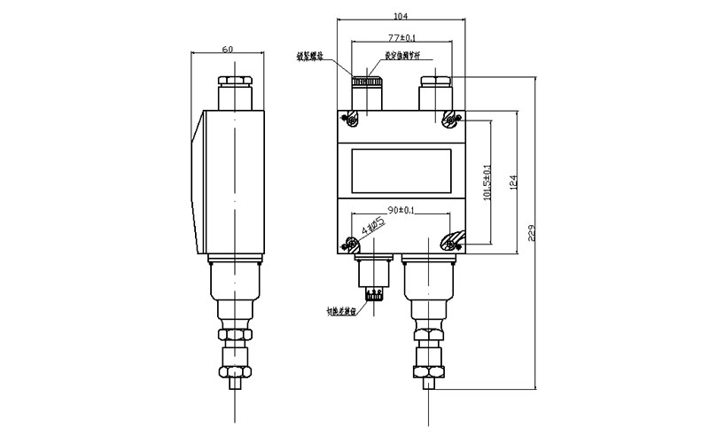 3. 被控介質(zhì)壓力不超過某一給定壓力值時,指針應(yīng)調(diào)整在比給定值低一個切換差值(即下切換值)的位置上,調(diào)整完畢后,不準(zhǔn)再旋動切換差旋鈕;