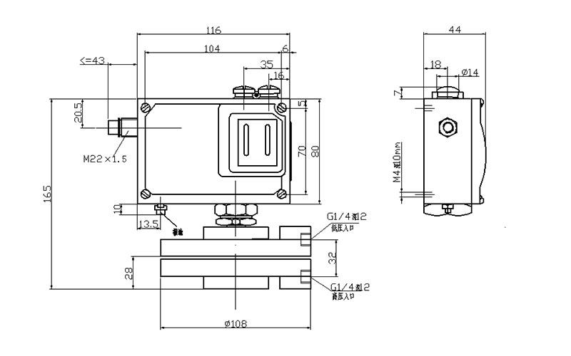 接線端1-3壓力上升至上切換值時(shí)接通,