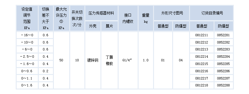500/7D壓力控制器的設(shè)定值可調(diào),調(diào)節(jié)范圍0~2.5MPa。