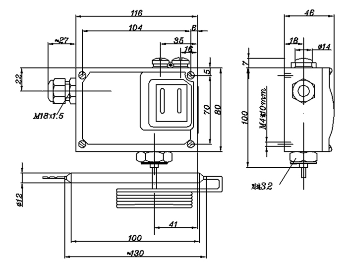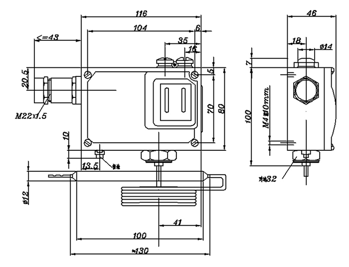 541/7T溫度開關(guān)外形尺寸及安裝尺寸(單位:mm)